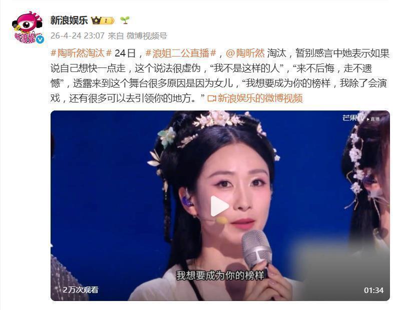 据 4 月 24 日晚间报道,《乘风 2026》二公的淘汰名单一出,陶昕然的名字赫然在列。这位凭借 " 安陵容 " 一角深入人心的女演员,在古风舞台《冷夜》中水袖独舞、戏腔婉转,被观众盛赞 " 天选古人 ",甚至有人感叹 " 眼神戏梦回安陵容 "。然而,舞台零失误、团队总票数全场第二的成绩,并没能帮她留住席位——个人喜爱度仅 27 票,12 名待定选手里垫底出局。